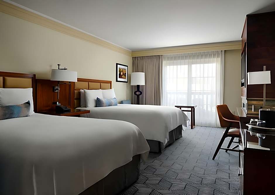 The deluxe rooms feature a flat-screen TV, guest robes and a refrigerator.